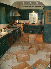 Not bad if I do say so myself. The house is about 3500 sq. feet, which is quite a good amount of surface area. Unfortunately I'd have to go digging through boxes of photos to find the 'before' pictures of the inside, as they didn't exactly make the cut into my photo albums, but picture the entire thing done in 60's/70's floral wallpaper - mostly in hues of pinks. I'll just tell you right now, it was not a pretty sight. Here are a few of the inside though after the renovations. With the kitchen, we completely gutted it and put in all new appliances and cabinets. The floors were covered in a horrible laminate tile, and when we took it up, we found these great wood floors that we then sanded and stained.When we pulled up a greenish 60's carpet in the living room, we found this amazing Axminster carpet underneath, so we decorated to match the hues of the carpet.