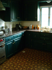 and although it is wonderful, it did need a little bit of work. The first major thing was the kitchen. The cabinets had been painted in the 90's and were a teal green color and the orange/yellow tile floors went back to the 60's in my estimation. It was not a pretty color combo and very dark.When I decorate, I like to save pictures of the things that I am attracted to. I found that I was really drawn to the white kitchens that I saw, so we decided to paint the cabinets white (Sherwin Williams, navajo white). In order to paint cabinets, be aware that you really need to sand them and clean the surface well.